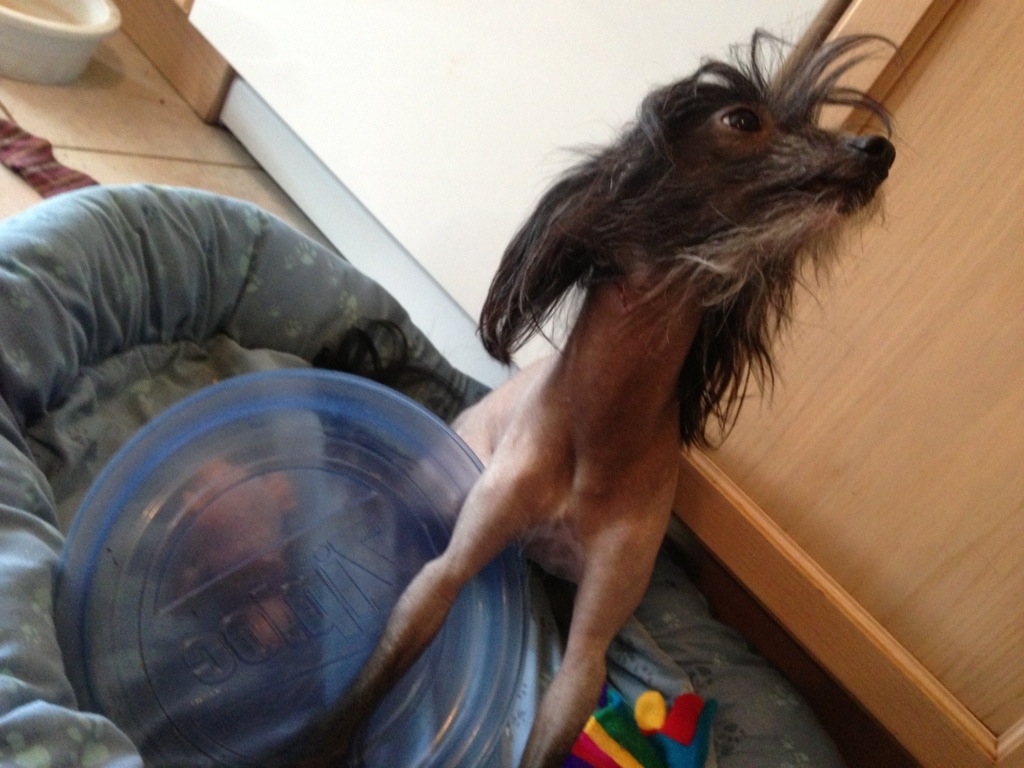 Little Roobert makes a statement by putting his dish in his bed (usually he carries it around). “Momma…I’m hungry!”